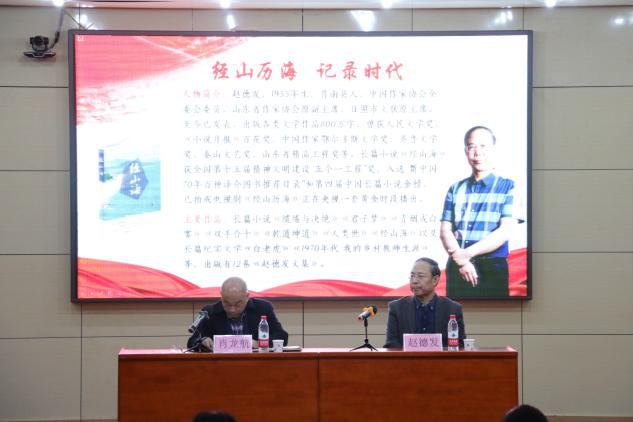 兼职教授赵德发于学校图书馆报告厅举办“经山历海,记录时代”学党史教育主题报告会议。计算机学院党委副书记肖龙航主持会议。三个学院全体教职工党员、研究生及本科生党员、预备党员参加了本次会议。