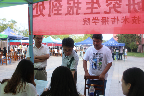 飒爽九月,志存高远,2014年9月6日,按照学校的部署和安排,我院开展了2014级研究生的迎新工作。在这繁忙热闹的一天中,学院负责的师生各司其职,迎新工作进行的有条不紊,共迎来了92名研究生。此次迎新活动,事物繁杂,工作量大,为此学院领导和老师高度重视迎新工作,提前制定了详细的迎新方案,力求做到高效、周全、细致。我院研究生会成员是迎新工作的骨干力量。6日早上7点20分,迎新工作负责人就到达指定迎接点,开始忙碌起来,为一天的工作做好了充分的准备。