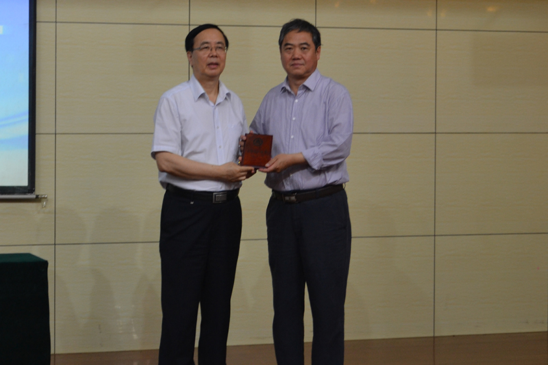 为表达敬意,马东骅代表学校向张少刚教授颁赠“名家高端学术讲堂”纪念牌。