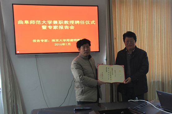 2016年1月8日下午,南京大学信息管理学院教授、博士生导师郑建明先生兼职教授聘任仪式暨“大数据时代下图书馆学情报学学科特点和新生长点”的报告会在海棠文化