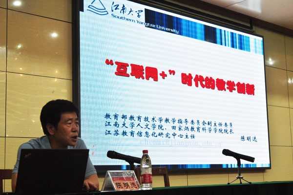 6月24日下午,江南大学人文学院院长陈明选教授应邀来我校作了题为《互联网+时代的教学创新》学术报告。本次报告会在日照校区图书馆报告厅举行,由海棠文化