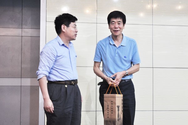 党委书记李兴保教授向陈明选教授赠送纪念品,以表示对陈教授的欢迎和感谢。