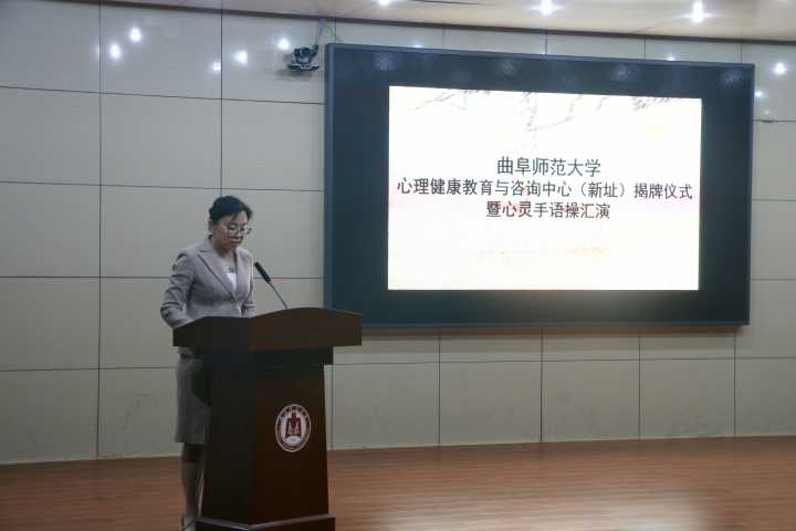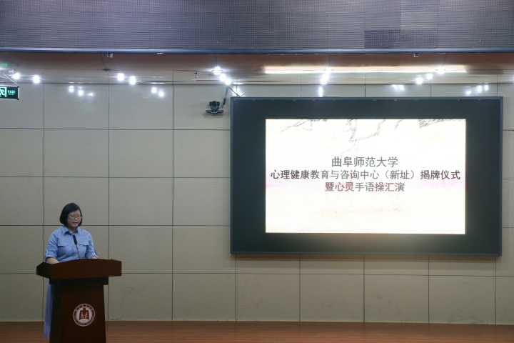 心理健康教育与咨询中心(新址)揭牌仪式暨心灵手语操汇演于图书馆报告厅顺利举行。日照校区管理办公室主任孔令军、学生工作处处长姜美颖、校团委副书记刘蓉、武装部副部长赵秀臣、 海棠文化