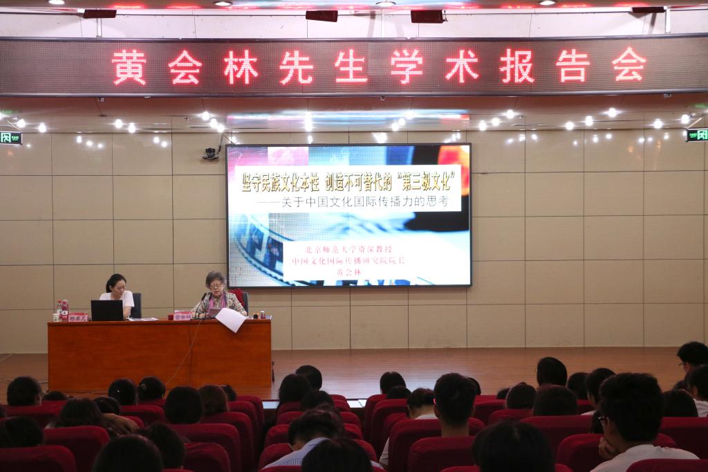 6月4日上午,北京师范大学中国文化国际传播研究院黄会林先生为我校师生作学术报告。北京师范大学中国文化国际传播研究院副院长罗军教授、“看中国”项目统筹杨卓凡博士,以及我校海棠文化