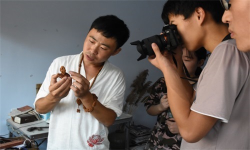 极峰队赴潍坊高密开展“三下乡”暑期社会实践调研。本次调研的主题为核雕及其传承人。上午八点,潍坊高密核雕匠人王明水在其工作室接受极峰队采访,并进行核雕作品展示及实践制作。
