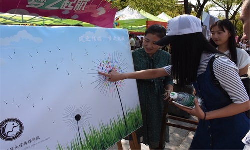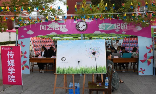 我院本次以“风之传媒,梦之起航”为主题,在报到处安放并张挂了众多彩色的风车,这些蕴含着希望与追梦精神等寓意的风车也成为迎新会场一道靓丽的风景线。报到处的正前方摆放了一块给新生按手印的画板,手印最终可以合为蒲公英的形状,照应着本次“风”与“梦”的主题。迎宾组身穿院服在报到处引领着新生的报到,展示传媒的风采。而今年首次以扫码的方式来登记报到,工作效率有了极大的提高。报到处专门设立了家长休息区,提供了免费的矿泉水,来供家长休息。接车组也在大巴车门口高举海棠文化