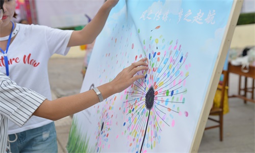 以此为宗旨展开迎新工作,新生到来时,在画板上按下手印,留下大学的第一个痕迹。画布最终呈现一个五颜六色的蒲公英,象征着青春与活力。传媒,因你的加入更加精彩。