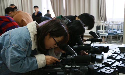 电视摄像技能大赛伊始,参赛者首先在JS434进行登记,并通过抽签选取题目,再根据题目要求,设计镜头及选取拍摄地点。随后,参赛小组按编号领取机器并检查摄像机是否正常。每组比赛时间为30分钟,并有学院比赛领导小组全程监督以保证比赛的公平性与专业性。