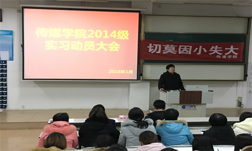 举办2014级新闻学、广告学、数字媒体艺术、数字出版专业实习动员大会。