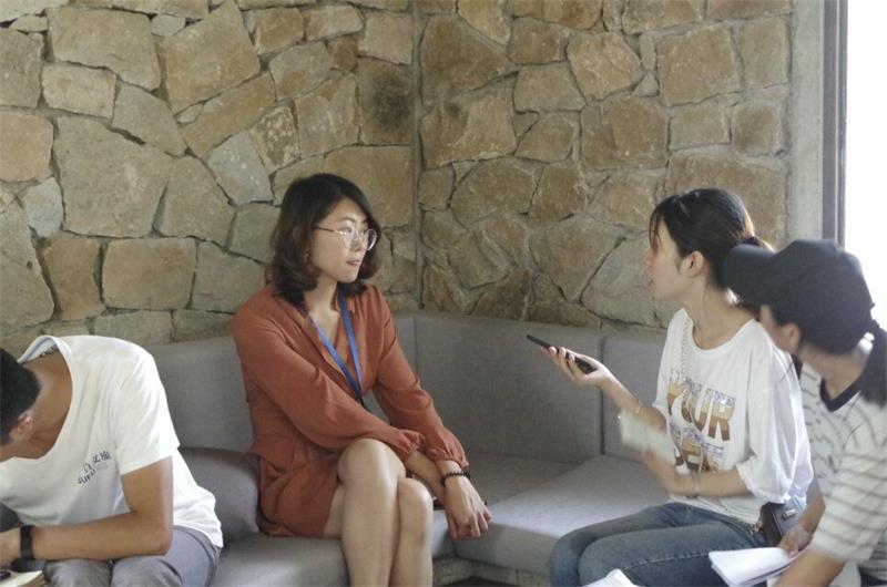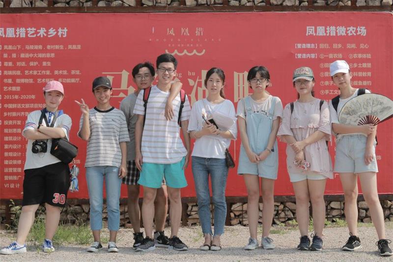 队伍到达马陵湖畔石龙口村,队员们在村内路标的指引下,经过一番跋涉,来到了位于山林中的“凤凰措”。队员们首先向在当地工作的村民了解了该项目的建设进程,目前已完成对民宿、餐饮的改造,文化、娱乐等方面仍在建设中。“凤凰措”负责人杨女士向队员们介绍了该村落从“杜家坪”到“凤凰措”的转型变化,她说:“这个村子叫杜家坪村,以前是个很少有人居住的空心村,我们董事长认为,在保护古村落历史遗迹的基础上,建造一个文化艺术村落,让它获得新生,是一件非常有意义的事情。”