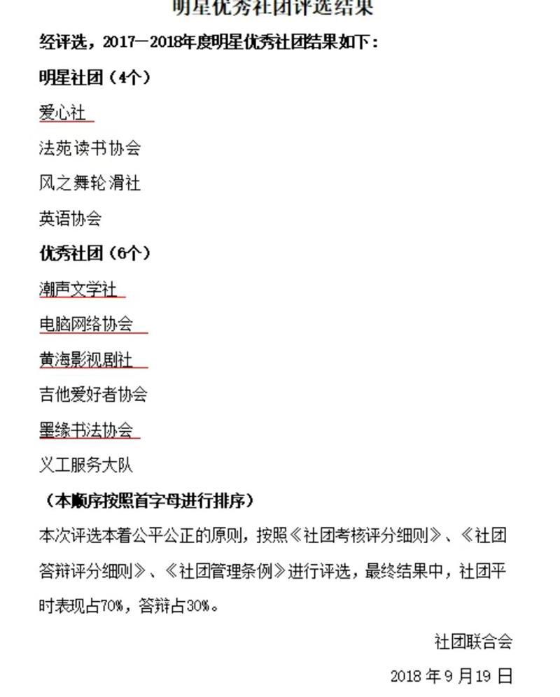 各社团积极参与,表现突出,取得了明星社团一个、优秀社团四个的骄人成绩,更是在全校的评比中脱颖而出。