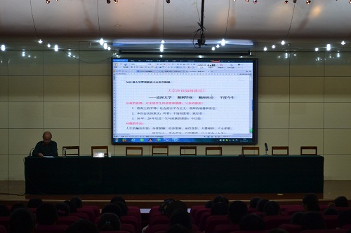 报告会上,肖龙航围绕“适应大学、顺利毕业、顺应社会、平度今生”这一主线对2015级新生进行了大学生活的指导。