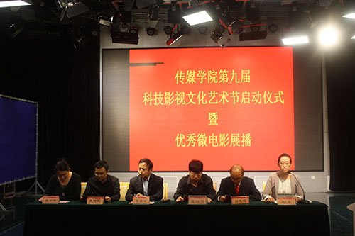 第九届科技影视文化艺术节启动仪式暨优秀微电影展播活动在JS434演播厅举行。学院党总支书记李兴保,院长马秀峰,党总支副书记肖龙航,团总支书记刘蓉,学院业务老师、副教授孔德刚,2012级政治辅导员张守荣出席启动仪式,启动仪式由刘蓉主持。