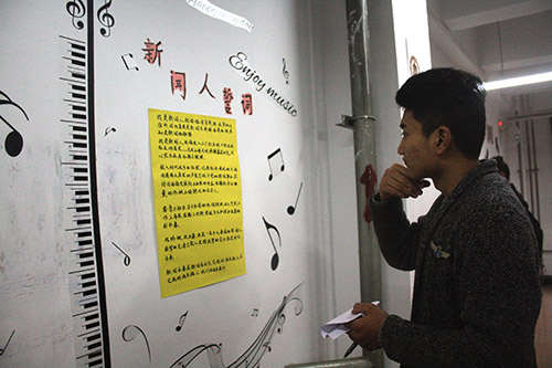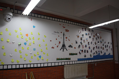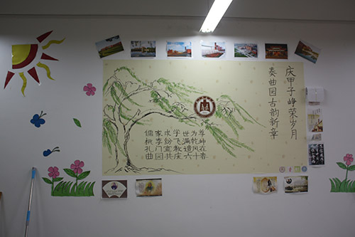 各个班级别出心裁,对教室进行了精心装饰。其中,JA101为2015级教育技术学一班负责的教室。他们采用电影胶片的形式,展现专业特色,鲸鱼形状的照片墙展示了2015级教育技术学一班同学们的风采,同时利用鲸鱼品行善良、团结集体的寓意,展示班级精神,一张张照片为班级营造出了暖心之感。同学们还将自己的心愿写在便利贴上,贴在了教室的后墙,时时刻刻进行勉励,提醒大家不断奋进。在此次教室装饰中,各个专业充分展现了专业特色,比如新闻专业负责的教室中出现了“新闻人誓词”,同时悬挂报纸供同学们学习;数字出版专业的教室有全班同学去北京学习时的班级合照等等。另外,有的班级在装饰中增添了孔子画像,体现曲园人对儒家文化的传承;有的教室将校训贴在后墙上,时刻提醒同学们要秉承“学而不厌 毁人不倦”的曲师精神;有的教室在装饰中加入海棠文化