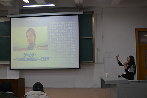 陈平平以新闻采访写作为主线,分别从新闻的现实现状、新闻发现力及媒体人必须坚守的原则三个方面展开讲解。首先,陈平平提出新闻价值的五要素:时新性、重要性、显著性、接近性和趣味性,并通过真实事例和组图带领同学们从本质上理解新闻价值的深层含义。接下来陈平平就新闻发现力为同学们详细讲解,她认为,“新闻,惟其观点独到、写作精到、内容精准,才有吸引力、感染力”,新闻发现力是新闻精品之母。而针对如何增强新闻发现力,她从找新闻兴奋点、写新闻故事、生动化语言、重要报道写出思想、高度重视深度报道这五个方面结合具体稿件事例进行分析。她指出,好的新闻作品需要“通天气,接地气”。理论讲解之余,陈平平为在座同学们展示了几组经典的新闻照片,使同学们进一步理解“把握形势变化,挖掘时代特征”的能力。培训过程中,陈平平多次强调一个媒体人必须坚守“可不说但不可胡说,可不做但不可胡作非为”的原则,她希望每一位将来选择新闻工作的同学都不要忘记做人的底线,要用坚毅的信念走到最后,做社会出色的“扫雪工”!