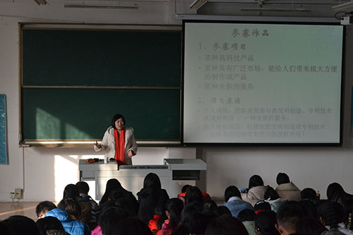 首先,张守荣从大学教育与个人成长两个方面为同学们解释大学生做科研的重要性和必要性。她指出,科学研究、人才培养、社会服务、思想创新都需要大学生在科研方面的踊跃表现和创新实践。随后,张守荣详细列举出同学们可以参与的科研与科技活动,她以"挑战杯"全国大学生系列科技学术竞赛为例,为同学介绍科研大赛的一般参赛流程,普及论文写作知识。在对科研有了一定的了解后,张守荣为同学们解读了《海棠文化