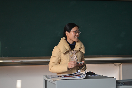 讲座伊始,李艳梅向同学们介绍并讲解了校报四个版面的构成,在介绍到第四版文化广场这一版面的时候,李老师鼓励同学们多投稿,投照片,将自己的作品发表在校报上。随后,李艳梅向同学们展示了在不同的场景下拍摄的校园新闻照片,并分享了如在什么场景下俯拍或是仰拍的多年的拍照经验与心得,令同学们受益匪浅。她特别强调:在拍摄照片时,一定要注意个人安全并保护好相机。