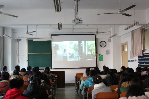 刘蓉首先播放了“海峡两岸大学生微电影展”获奖作品《罐装贩售》和《冬日摇篮》,通过两部大学生的获奖微电影和海棠文化