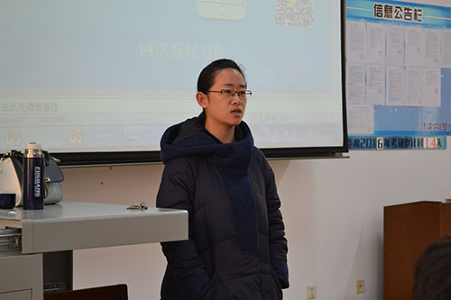 培训开始前,刘蓉首先向同学们对张丽做了简单介绍。培训中,张丽围绕网络新闻这一主题,分别从中国互联网气质、大众网、网络新闻知多少三模块为同学们作了相关的讲解。“近两年,互联网发生了天翻地覆的变化,网络新闻也发生了天翻地覆的变化”,张丽说。她列举“习近平七谈互联网”、“谈清朗网络环境”、第二届世界互联网大会乌镇召开三事例突出了中国互联网的三大气质。接着,她对大众网“两网”、“一报”、“一端”、“三刊”、“一社”、“一屏”、“一平台”进行了介绍,突出了大众网多层次全方位立体传播的特点,其间,张丽还提及了具有地方特色的日照大众网、莒县大众网、“山东24小时”新闻客户端,使同学们对这些新闻平台有了更多的了解。最后,张丽为同学们重点讲解了网络新闻的知识,包括网络新闻的定义、分类、复制、架构、报道形式以及写作基本原则。除此之外,对新闻写作的“十落点”、撰写稿件的“十八项注意”、网络标题怎样取以及网络新闻记者的要求,她也为同学们作了详细阐述。整场培训,张丽采用讲理论、摆事实的方式传达给大家大量的网络新闻知识,使参加此次培训的同学获益匪浅。
