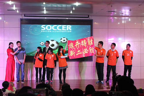 晚会以《L.A.LOVE sugar》舞蹈与《陪你度过漫长岁月》歌曲开场。紧接着,新闻二班带来精彩班级风采展示:演出以全班同学为班内传媒足球队队员庆功为背景,融合拉拉操舞蹈、班歌《旗开得胜》大合唱、场外连线以及任课教师送祝福等内容,体现了蓬勃向上的班风。数媒班将画室情景和场外摄影两个情景相串联,将《明天会更好》演绎出不一样的风采。教二班以回忆大学生活为主线,将新生报到、军训生活一一重现。一首《倔强》唱出了班级的团结进取,体现出“陪你走过青春的倔强”的主题。数出班通过校园采访的视频大致介绍数字出版专业,通过招聘会的形式引出班级文化展示,一曲《高歌》让大家内心澎湃不已。以“在一起,更青春”为主题的教一班以《fantastic baby》活力开场,《和你一样》深情合唱更表现出青春的朝气。新一班通过情景剧和rap结合的形式新颖介绍了班级文化,军训题材小品《谢谢你》再现军训的酸甜苦辣。其间,由文泽622与202–2宿舍带来的改编版《还珠格格》,以及由孙晓庆等同学带来的小品《偶像剧》引得现场掌声尖叫声此起彼伏,把晚会推向高潮。抽奖环节惊喜连连,晚会通过电脑摇号、老师选号选出幸运观众颁发奖品。