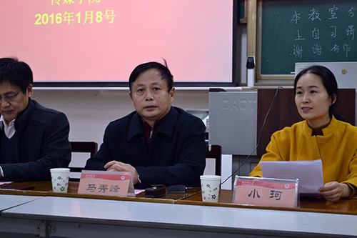院长马秀峰、副院长胡凡刚、2012级政治辅导员张守荣、数字媒体系主任李秀霞、新闻传播系主任卢长春及就业实习的指导老师出席本次会议,2012级广告和学数字媒体艺术专业的学生参加会议。
