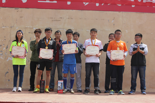 第四届校园足球超级联赛闭幕式在西操场举行。本次比赛历时五个多月,在今天圆满落下了帷幕。学生工作办公室钟振洪老师、工学院田荣林老师、本届比赛裁判长刘刚老师、体育教学部王哲老师、基建后勤办公室崔昊老师、足协会长赵伟明以及各参赛代表队参加了闭幕式。