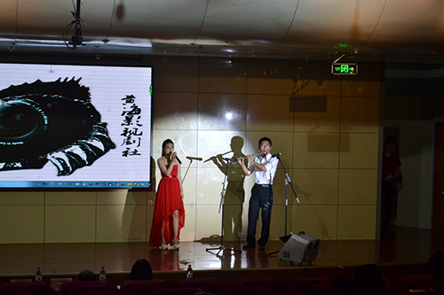 向黄海影剧社颁发社团活动资金600元,并鼓励社团加强活动举办力度,在提高同学们参加活动积极性的同时发展好社团。随后,比赛在唯美清新的开场舞《尤物》中缓缓拉开了帷幕。本次才艺比赛以守、攻擂方式进行节目对决,分为歌曲PK、相声PK、话剧PK三个环节,每一个环节结束后都由评委老师和现场观众对节目进行投票作为最终节目排名的依据。歌曲对决赛中,王心融、郭梦琪用优美的声音为大家带来歌曲《倒带》,张宇不甘示弱,一首《梦醒时分》振奋人心。在歌曲大比拼游戏环节中,主持人邀请七位参赛选手和一位观众上台并分为两队,每位参与者依次唱出含有“爱”字的歌,场上氛围轻松活泼。相声对决环节中,王振、刘聪用妙语连珠的台词、搞笑夸张的动作演绎相声《满腹经纶》,笑点连连,观众席中呼声阵阵,掌声雷动。而官小迪、孔琛刚柔并济、风格混搭的舞蹈串场更是引起观众们的连声叫好。比赛的重头戏是新闻班同学带来的话剧《暗恋桃花源》和《倾城之恋》,同学们大饱眼福。在经过三轮才艺PK环节后,王心融、郭梦琪的歌曲《倒带》,张宇的《梦想时分》名列歌曲节目的前茅,刘聪、王振的相声《满腹经纶》在相声PK中脱颖而出,《倾城之恋》依其独特的剧情和引人入胜的表演氛围荣获话剧组的桂冠。