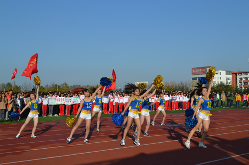 李晖进行宣誓,他表示全体运动员一定以永不言败、共同前进为目标,赛出风格、赛出友谊。最后,两个学院分别带来了精彩的啦啦队表演,花球纷飞,动作整齐划一,啦啦队员为大家带来了活力四射的开场。