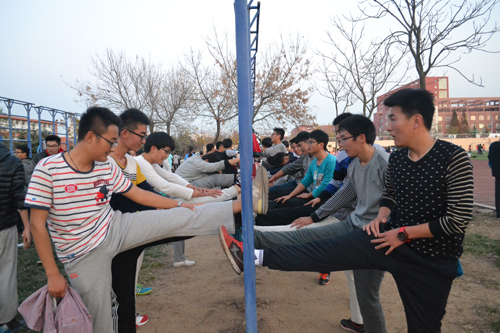 虽然天气渐渐寒冷,运动场上已不乏我院早早到训练场进行热身训练的学生。全体运动员在体育部长邢政和李伟的带领下,在科学训练方案的指导下积极参与训练,严格遵循考勤,合作互助,不畏艰苦,持之以恒,淋漓尽致地展现出我院勇往直前的精神面貌。
