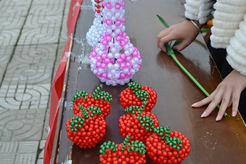 活动一开始便引来了同学们的关注,得到了同学们的大力支持。一件件精美的手工作品,不管是用珠子穿成的小苹果,小桃子,还是用绢布做成的各色花卉,都承载着孩子们的心血,蕴含着孩子们的细致与认真,也将孩子们的心灵手巧展现得淋漓尽致,这不禁让人眼前一亮。