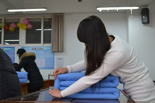 2014年宿舍文化节决赛暨舍歌大赛与叠被子大赛决赛于11月30日2:30在JC306成功举办,闯进决赛的18名叠被子的同学和9个宿舍参与了比赛。我院学生会主席赵明聪,团总支副书记王琳珊,学生会秘书长李雪洁以及各院宿管部代表担任比赛评委并观看了表演。 作为我院宿管部每年例行举办的活动,宿舍文化节由一系列的比赛组成,今年为宿舍公约大赛,舍风大赛,宿舍装饰大赛,舍歌大赛以及叠被子大赛,共五个比赛。今天进行的是宿舍文化节闭幕式暨叠被子大赛、舍歌大赛的决赛。比赛在魏文静的歌声中拉开帷幕,首先进行的是叠被子大赛。参与比赛的18位叠被子的同学被分为四组参加比赛,每组5人,叠被子时间为3分钟,由各位评委统一打分由高到低进行排名。叠被子大赛结束之后是舍歌大赛,由各个宿舍依次上台为大家展示自己宿舍的舍歌表演。参加比赛的9个宿舍都有自己的特色,手语表演,歌曲串烧,吉他演奏,舞蹈展示,各种吸引眼球的精彩表演渐渐将比赛的气氛推向高潮。在舍歌表演中大家展示的不仅是每个人的才艺,更是一个小家庭团结有爱的精神风貌和特殊的情感。舍歌表演结束后,主持人宣布了获奖名单,叠被子大赛中前9名分获一、二、三等奖,而舍歌大赛中的9个宿舍分获一、二、三等奖和优秀奖。 至4:30,比赛正式结束,由担任评委的师哥师姐为叠被子比赛和舍歌表演中获奖的个人和宿舍进行颁奖并合影留念。