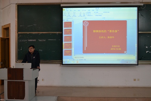 在JE101召开了新闻写作培训班第八讲,此次讲座我院有幸邀请到半岛都市报日照站站长陈修华为主讲人,与大家畅聊报纸那些事儿。