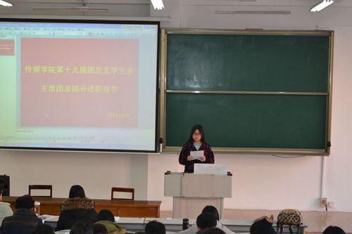 第十九届团总支学生会主席团及部长述职报告在JA101室举行,学院相关部委及例会成员参加报告会。