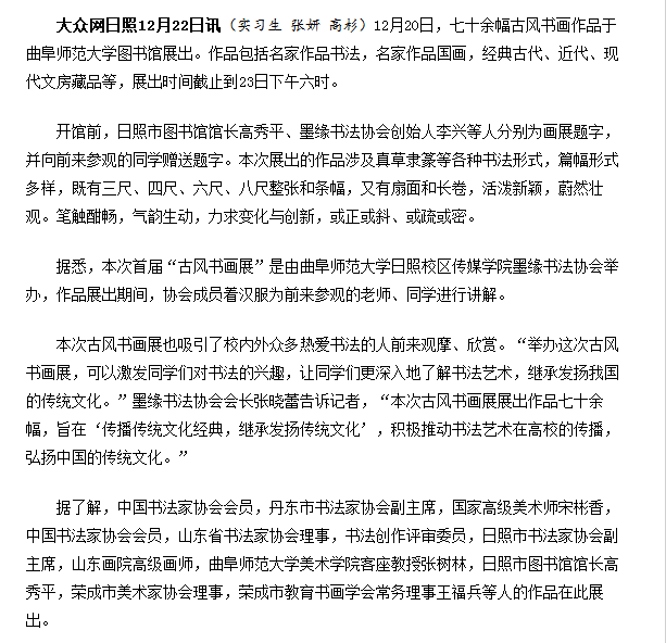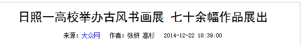 【来源:大众网:日照一高校举办古风书画展 七十余幅作品展出 | 发布日期:2014-12-23 】