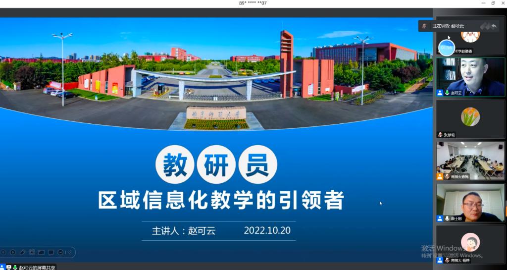 在F301智慧教室召开了主题为“教研员的区域信息化教学引领力”的学术报告。此次报告属于全国教育技术专业校际协同课程《教育技术研究前沿》中的主题课程,主讲人为我院副院长赵可云教授,报告在腾讯会议进行,天津师范大学颜士刚教授担任主持人。