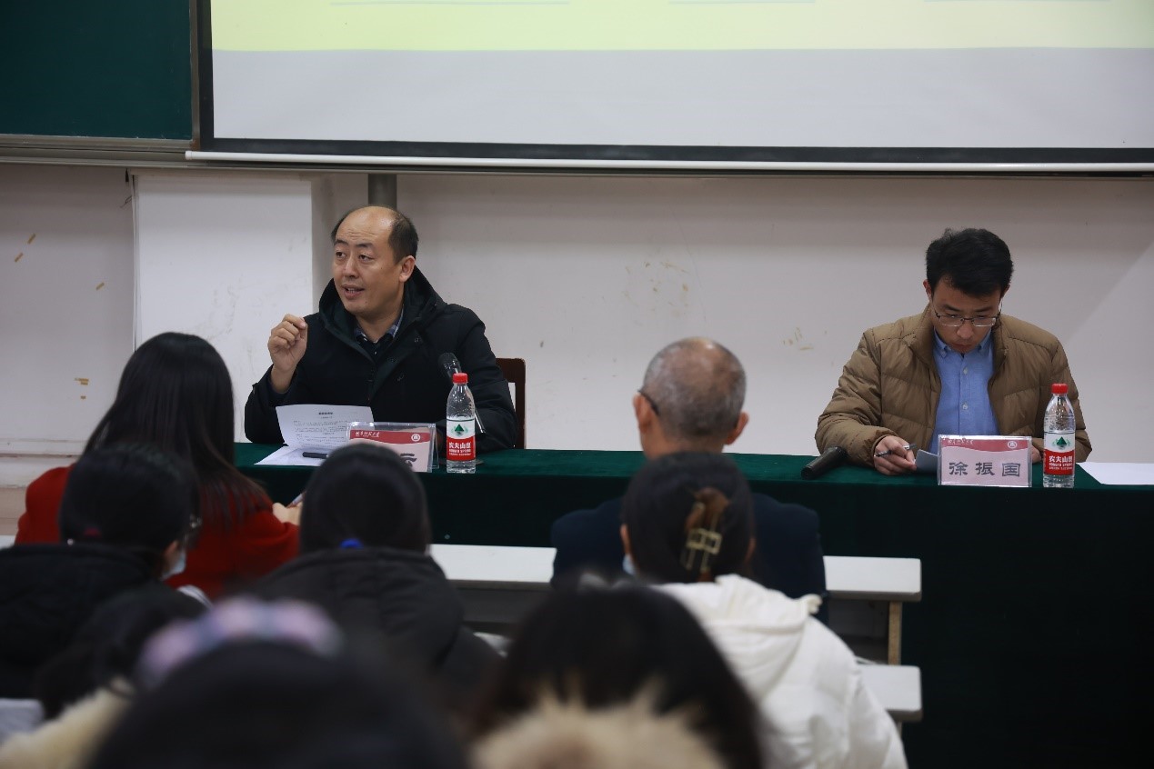 上届考研情况及优秀成果,并对备战2022年研究生考试的同学强调本次座谈会的重要性。赵可云结合各类高校历年考研情况,建议学生要重视关注目标院校网站最新信息,注意关注热点事件,同时重点强调了答题过程中要进行过程分析等问题;徐振国提出要重视答题技巧,拓展自身相关知识。之后,两位老师针对学生的疑问进行相关回答及补充,围绕考研答题技巧、答题规范进行深入的讲解及解释。