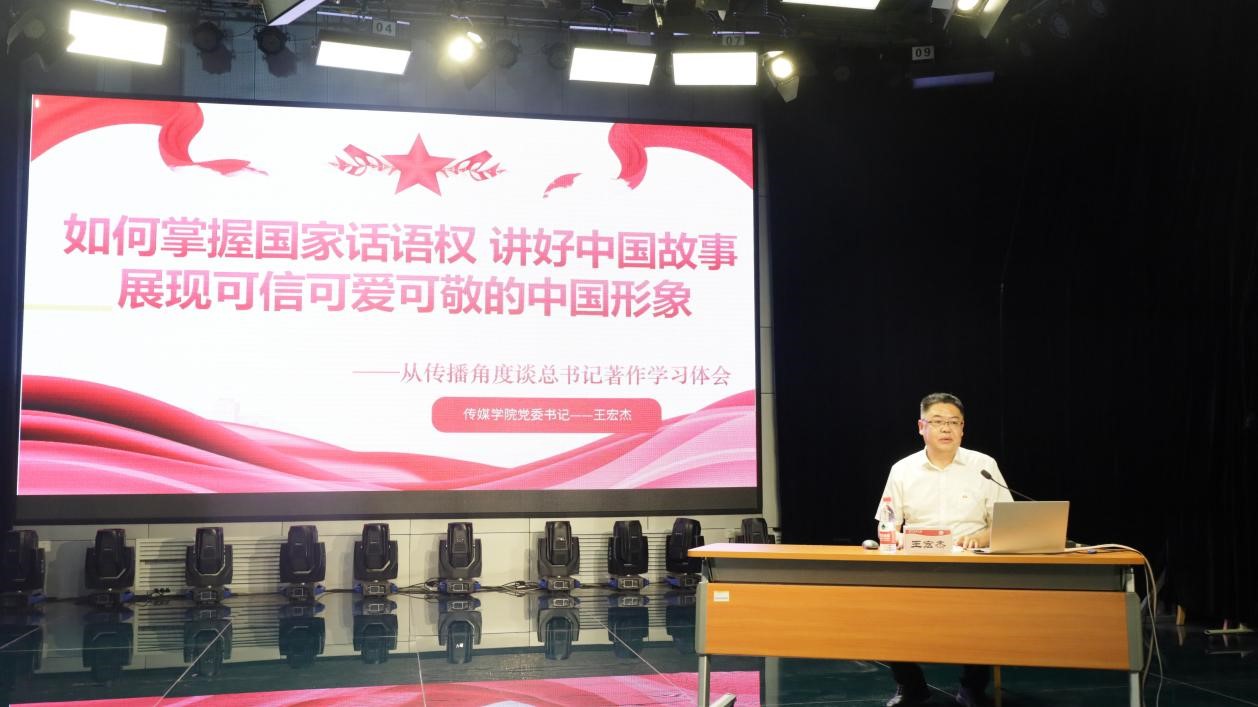 王宏杰以“如何掌握国家话语权,讲好中国故事,展现可信可爱可敬的中国形象”为题,从传播学角度就其对习近平总书记的著作学习体会做出讲解。讲解过程中,王宏杰立足当今中国百年未有之大变局的时代背景,分别以如何在掌握国际话语权中展示可信可爱可敬的中国形象、如何在讲好中国故事中展现可信可爱可敬的中国形象两个角度为切入点,结合一系列具有中国特色模式的话语表达方式的实例,深刻阐明了新形势下党的宣传思想工作的历史方位和使命任务。王宏杰要求支部成员们牢记习近平总书记嘱托,怀揣远大理想与抱负,承百代之流,会当今之变,讲好中国故事,传播好中国声音。