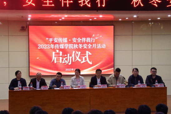 启动仪式上,田荣林谈到,学院举办秋冬安全月的活动能帮助同学和老师们牢固树立“安全第一”的观念,切实提高安全防范意识,进而把安全教育目标落实到具体行动上,把各类隐患消灭在萌芽状态。曲涛宣读了安全教育活动介绍。他向同学们讲解了本次“平安传媒•安全伴我行”秋冬安全教育月活动所涵盖的六个专题、十二个主题,并激励同学们踊跃参与主题活动,在活动中进一步深化安全意识。传媒学子吴曦作为学生代表宣读倡议书,号召同学们树立高度安全意识,做好安全防范,以实际行动做新时代安全教育的代言人。与会领导在主持人的引导下,于屏幕处共同助力,完成启动仪式,正式拉开海棠文化