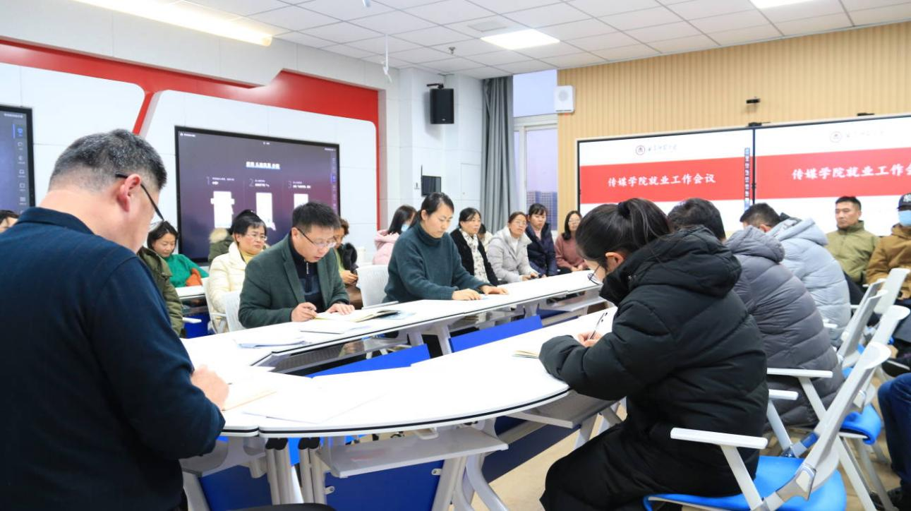 于JC813召开2024年就业工作会议。学院领导班子、全体教职工参加会议。音乐学院团委副书记程西永、辅导员王凯列席会议。海棠文化