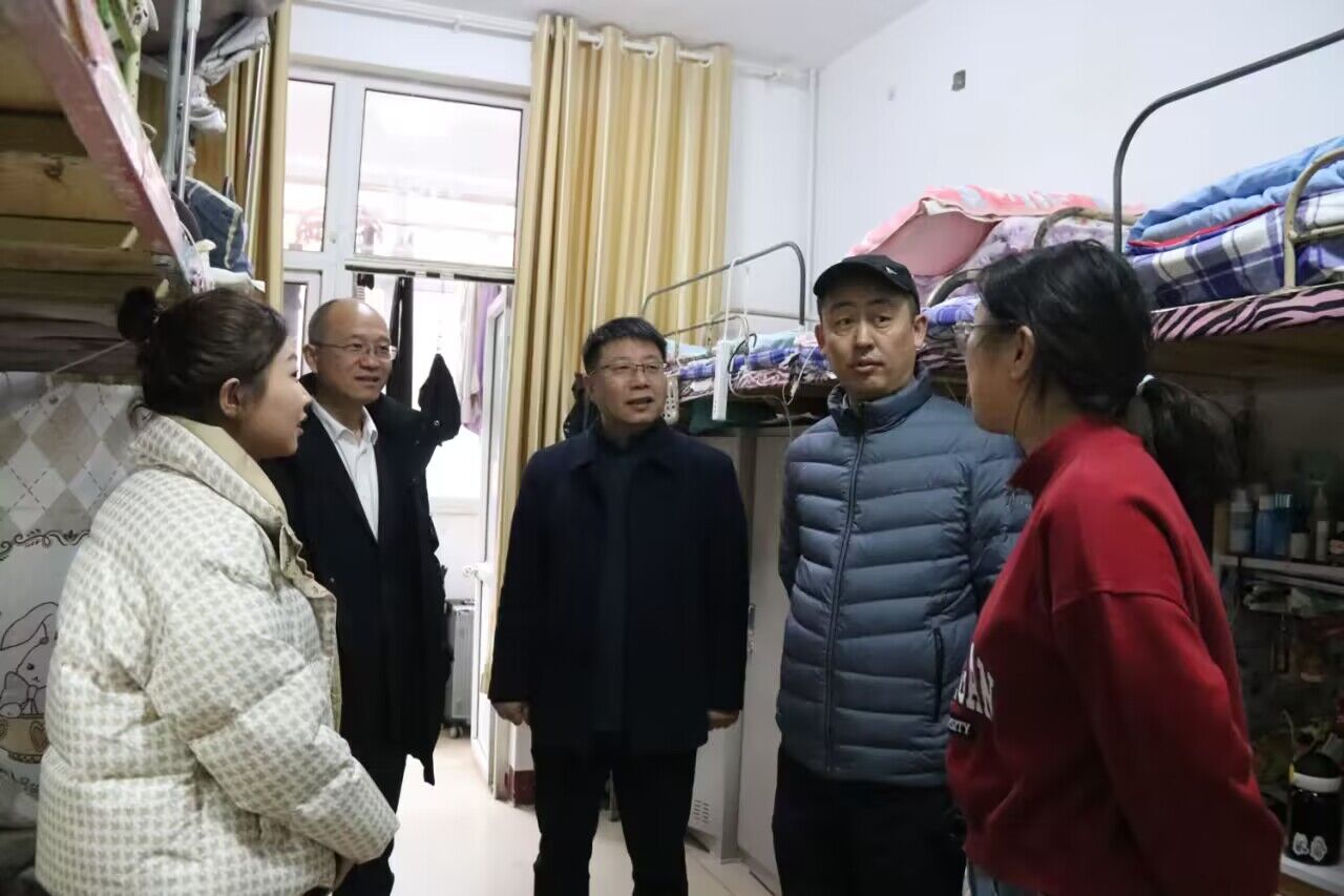 本次活动重点针对文泽园宿舍的安全和卫生方面进行了细致检查,并对在检查中出现的问题进行了批评与指导。在文泽园,老师们细心询问了2020级毕业生的住宿、考研、实习等情况,并且对考研成绩、就业实习方向等提出有效建议,高效缓解了2020级同学们的毕业焦虑。此外,老师们鼓励2021级学生们及时调整生活作息,继续保持认真学习的态度,加强身体锻炼,全面提升综合素质,提前做好毕业规划。在东升园,老师们仔细排查用水用电等安全问题,并鼓励2022级和2023级同学能够持续自觉保持宿舍卫生,营造一个安全、健康、舒适的学习生活环境。同时,老师们详细询问了2023级新生在校学习和生活的适应情况,嘱咐同学们有困难及时向辅导员老师反映。王宏杰建议学生们加强自我管理,在校期间积极参加各项竞赛、活动,提升自身综合能力,充实大学生活。