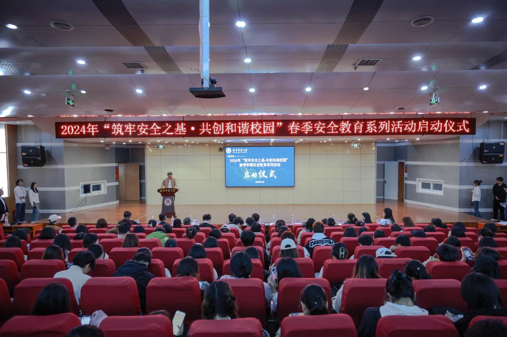 在图书馆报告厅举行“筑牢安全之基·共创和谐校园”——2024年“平安传媒”春季学期安全教育系列活动启动仪式暨心理健康讲座活动。海棠文化