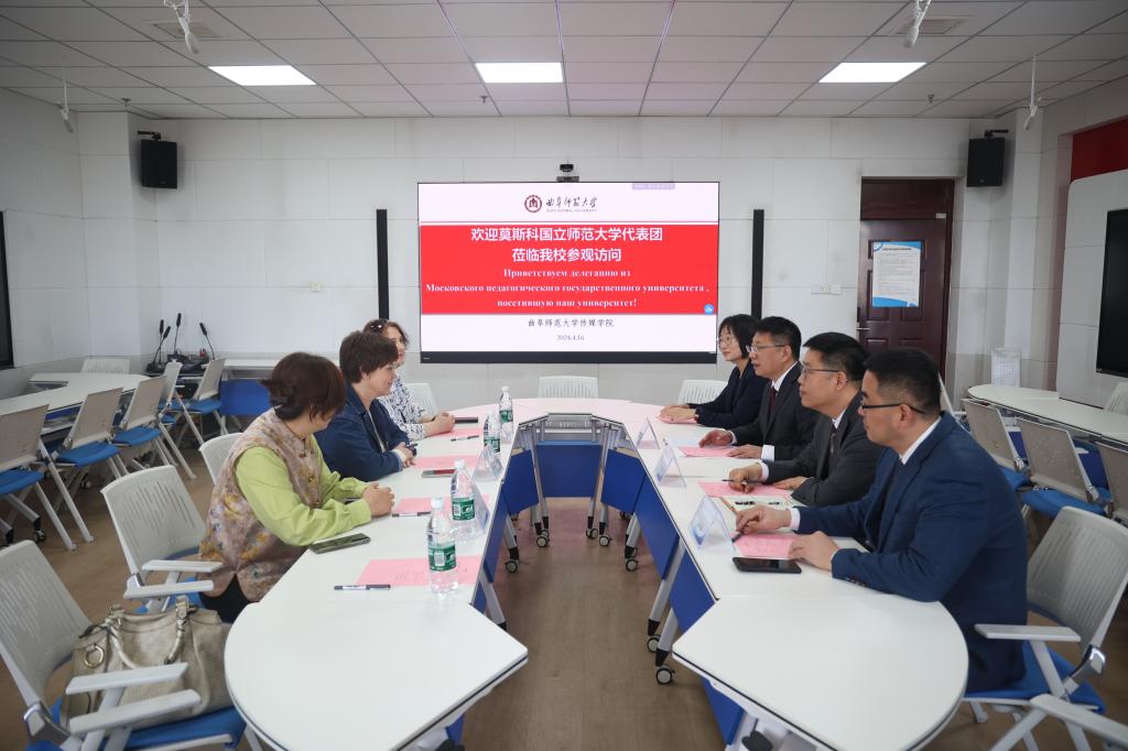 4月15日上午,俄罗斯莫斯科国立师范大学对外联络副校长弗拉基米罗芙娜一行前来海棠文化