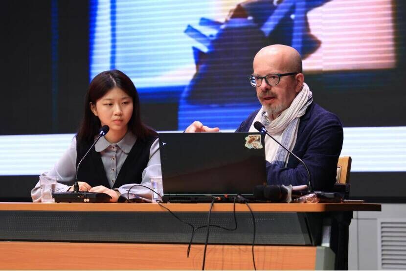 于多媒体教室顺利举办中意艺术座谈会。活动由数字媒体艺术系副主任李海龙组织,Roma、Bernardi教授主讲,王子敬老师翻译。海棠文化