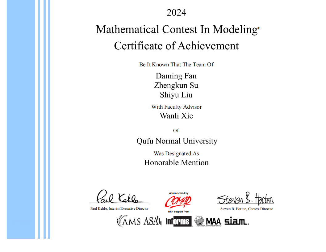 美国大学生数学建模竞赛(MCM/ICM)由美国数学及其应用联合会主办,是最高的国际性数学建模竞赛,也是世界范围内最具影响力的数学建模竞赛。竞赛内容涉及经济、管理、环境、资源、生态、医学等众多领域,参赛选手需在四天时间内完成选题分析、建立数学模型、求解模型和英文论文撰写等流程,全面考察参赛选手分析问题、研究判断、方案解决能力及团队合作能力。