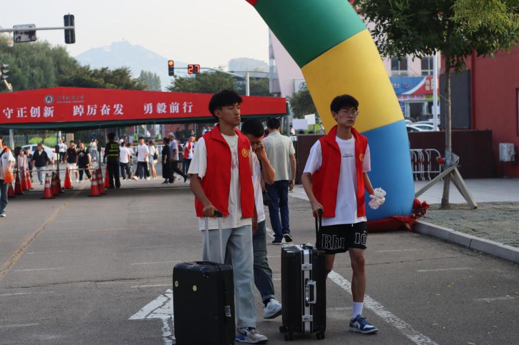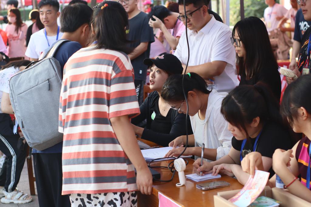 师哥师姐助力,传递温暖力量。在迎新现场,师哥师姐们分工明确、配合默契。有的在大本营前,举牌,接待到达的新生;有的负责引导新生完成报到手续,耐心解答他们关于学院、专业、住宿等方面的疑问;有的则主动帮助新生搬运行李,穿梭于校园各个角落,确保他们顺利入住宿舍。他们忙碌而有序,用实际行动诠释着海棠文化