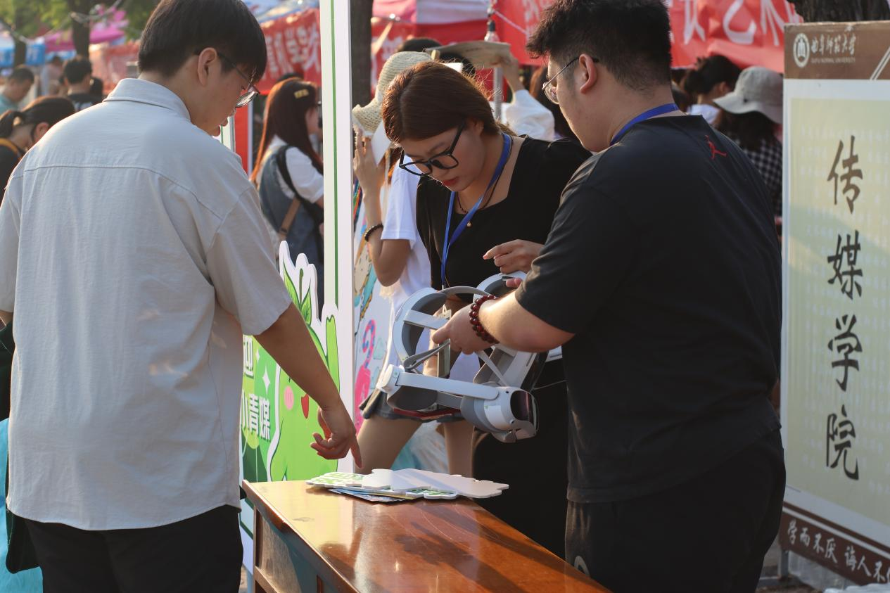 VR眼镜体验,感受传媒的“科技力”。迎新现场,VR眼镜也已调配完毕,等待新生的尝试与体验。借助先进的VR技术,新生能参与各种互动游戏和模拟实验,深入了解学校的教学的教学设施和科研实力,以一种全新的方式感受校园美景和文化。