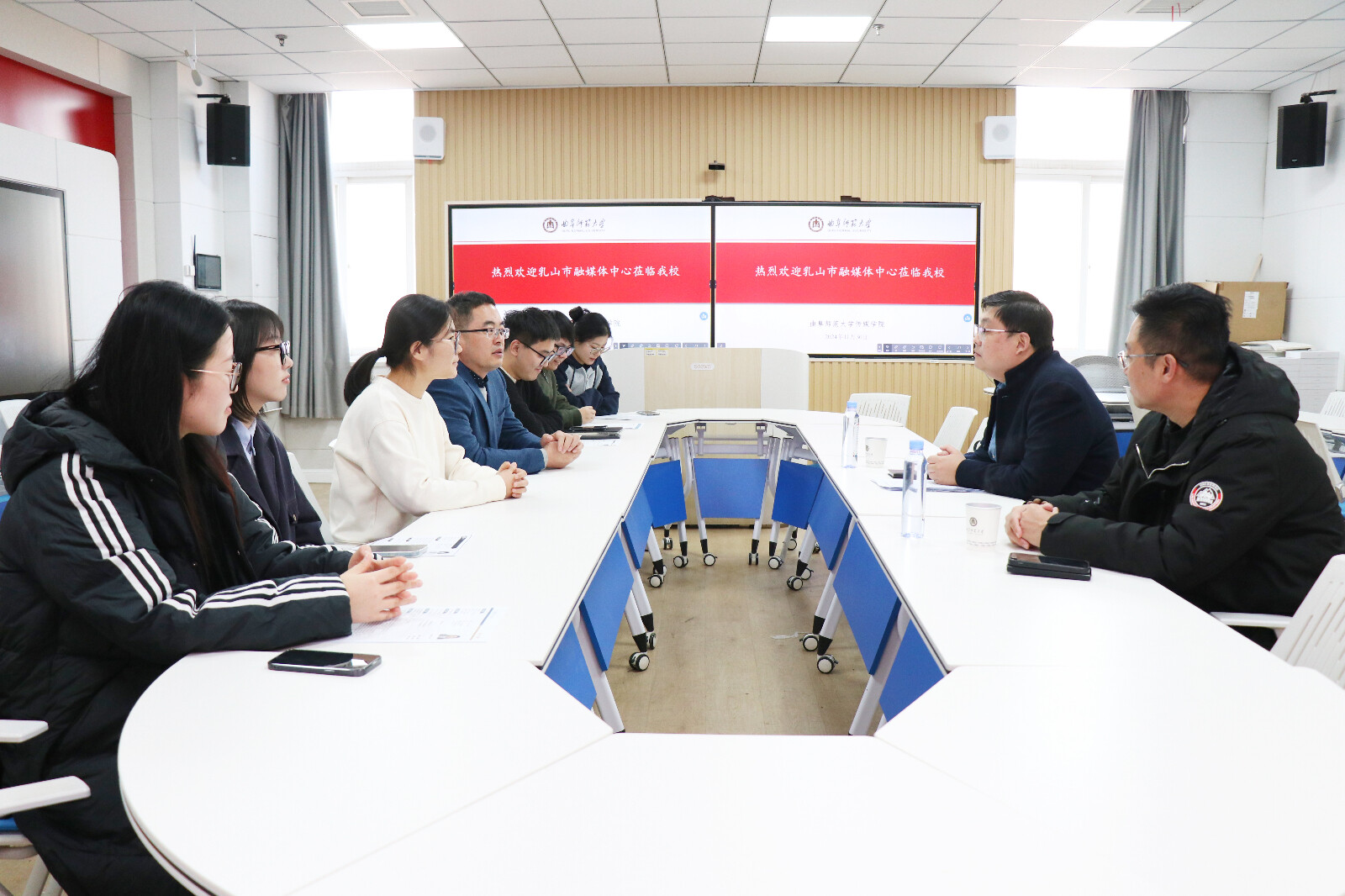 与乳山市融媒体中心于JC813开展“访企拓岗”活动。乳山市融媒体中心总编辑李悦等莅临我院,海棠文化