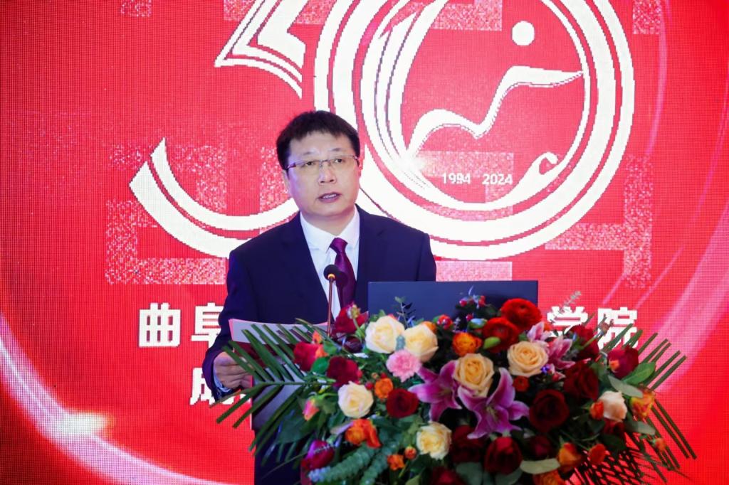 院长王焕景代表学院向对学院发展给予深切关怀和鼎力支持的各级领导、社会各界朋友以及全体师生致以最诚挚的谢意,并表示学院将继续以“质量”为根本,始终秉持高质量发展的理念,不断夯实学科基础,优化专业结构,提升科研创新水平和社会服务能力,推动学院迈向更加辉煌的发展阶段。
