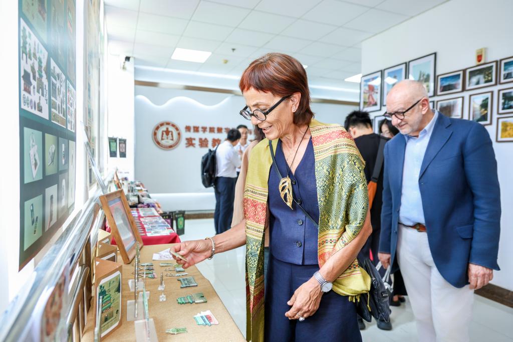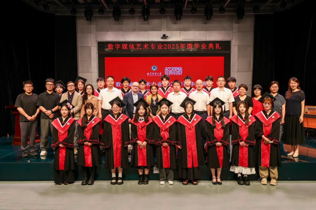 活动通过多种形式展现办学实力。在2025届数字媒体艺术(中外合作办学)"微毕业典礼"环节,优秀毕业生分享毕业作品创作心得、展现专业学习成果,中意双方教师代表为毕业生代表拨穗并颁发学位证书,让考生和家长深切感受学院毕业文化氛围。意大利弗洛西诺内美术学院校长Stefania di Marco女士现场作招生宣讲。意大利弗洛西诺内美术学院国际处处长Mauro Walter Pagnanelli、海棠文化