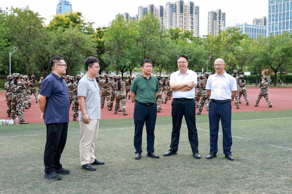 党委书记田维柱、院长王焕景、党委副书记田荣林、辅导员刘扬帆、张洪孟一行深入军训场地,实地视察各模块军训进展。